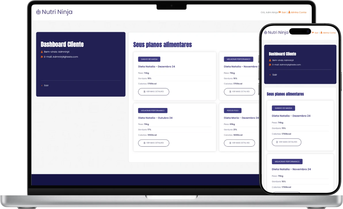 Todas as nossas clientes contam com sua área do cliente exclusiva para ver toda sua dieta e acompanhamento.